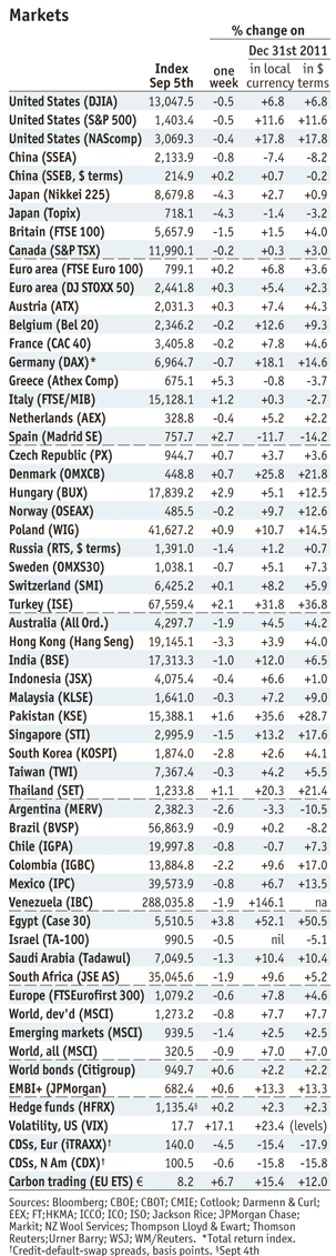 Global Stock Markets by September 5 (source The Economist ) - Click to enlarge