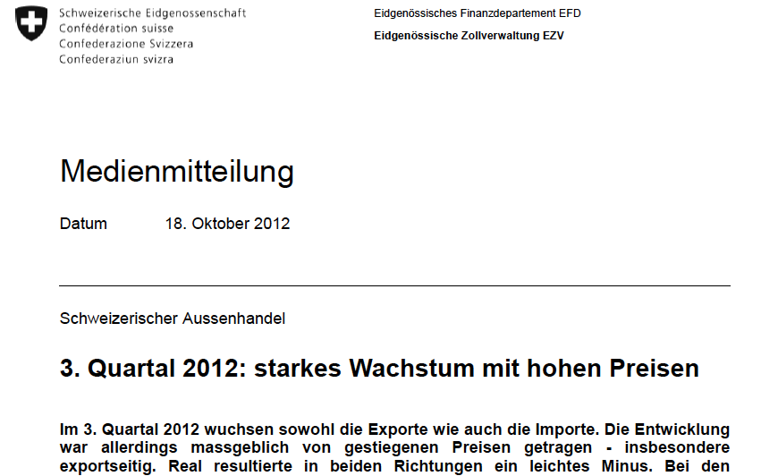 Last week the Swiss export data for the third quarter was released. The news agency report was simple: