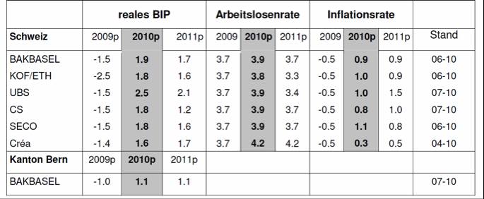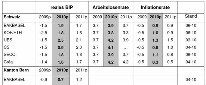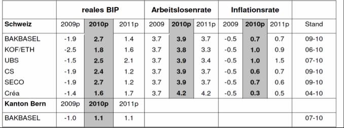- 2010 10 Konjunkturprognose Schweiz October 2010 Oktober
