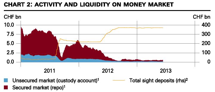 The continuing high level of Swiss franc liquidity has had the desired effect of keeping money market interest rates at close to zero.