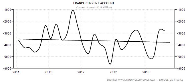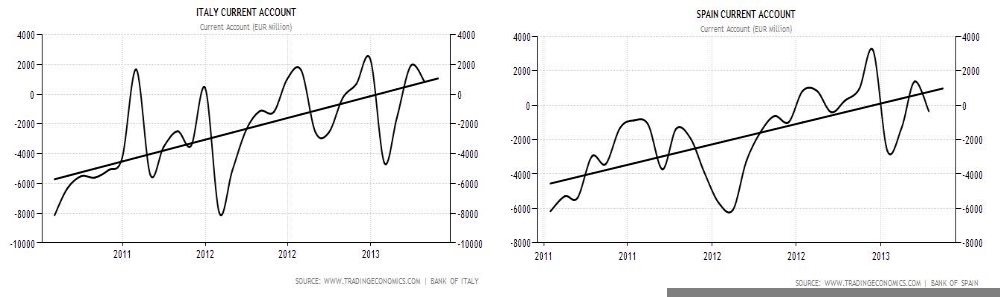 Austerity and weak growth let the euro fall from 1.45 in 2011 to 1.27 recently, but current account surpluses have been achieved and are increasing.