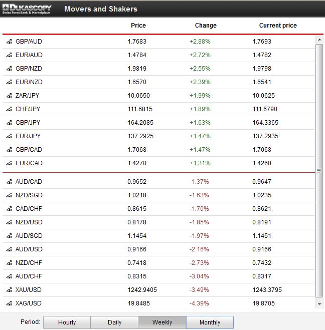 Thanks to the good German and bad Chinese data, the leaders of the week were the European currencies GBP, EUR, CHF and SEK, while the ones of the Asian bloc AUD, NZD, JPY and gold and silver lagged.