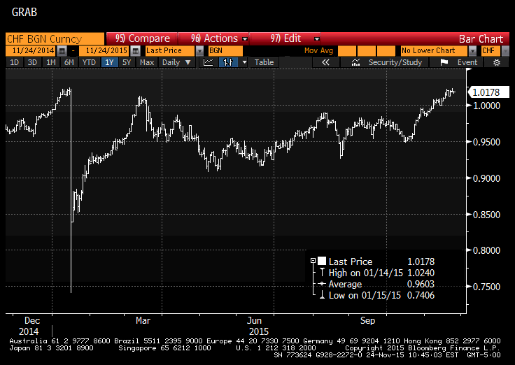 It has taken increased prospects of a Fed rate hike, negative 75 bp on sight deposits at the SNB, and the prospect of more, if the European Central Bank takes additional unorthodox monetary measures in early December as many expect, to allow the dollar to fully recoup that one day of losses. The dollar reached CHF1.0226, according to Bloomberg yesterday.