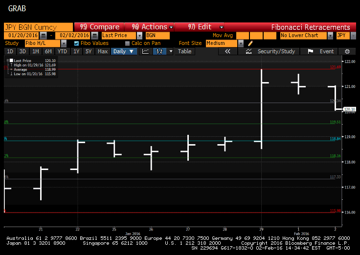 This Great Graphic show the dollar against the yen since January 20 low near JPY116.00.. The 38.2% retracement is near JPY119.50. This seems to be the next immediate target. It t also roughly corresponds with a 61.8% of the Kuroda-induced rally last Friday. Below there is the JPY118.50-JPY118.80 area. That corresponds to a 50% retracement of the rally since January 20 and where the dollar opened in Tokyo prior to the BOJ announcement.