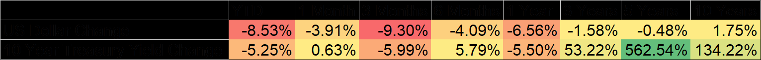 If the dollar does enter a more durable and obvious downtrend, investors will have to reposition their portfolios and some of that is already happening. Non-US stocks and gold have been big outperformers this year as the dollar has fallen to the bottom of its range and there are other assets that perform well when the dollar is falling. Choosing which ones to own and which ones to avoid will depend on the direction of interest rates.