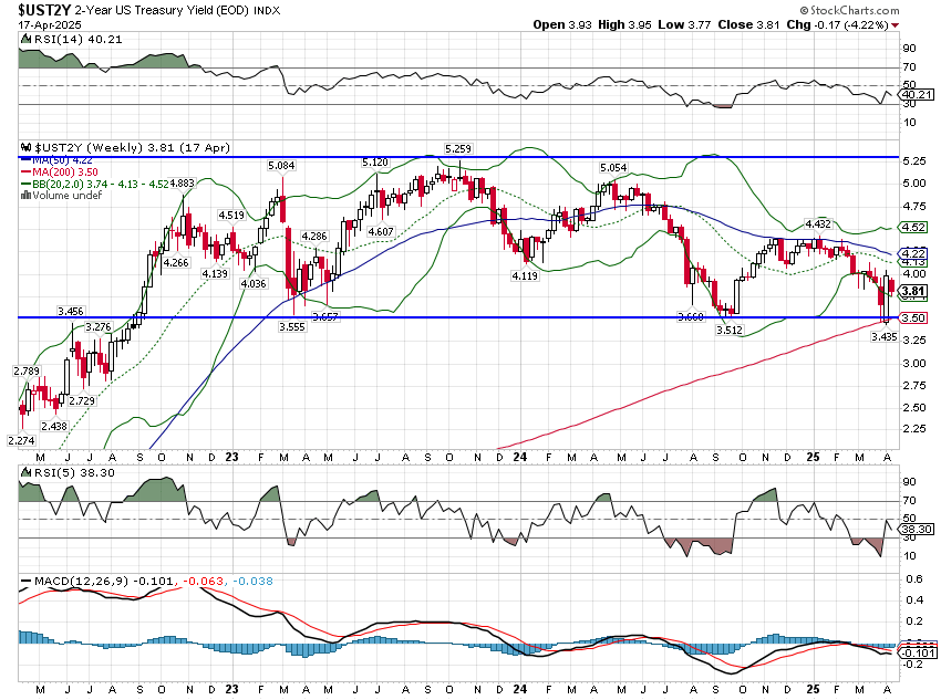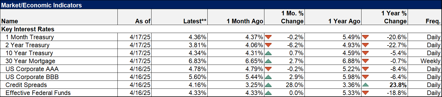 - The Philly Fed manufacturing survey fell to -26.4 from a +12.5 last month and 44.3 three months ago, a dramatic drop in a short period of time. Most of the volatility is due to the tariffs as companies were front running them 3 months ago and are now sitting and waiting to see what happens. New orders have fallen from +42.9 three months ago to -34.2 this month.
