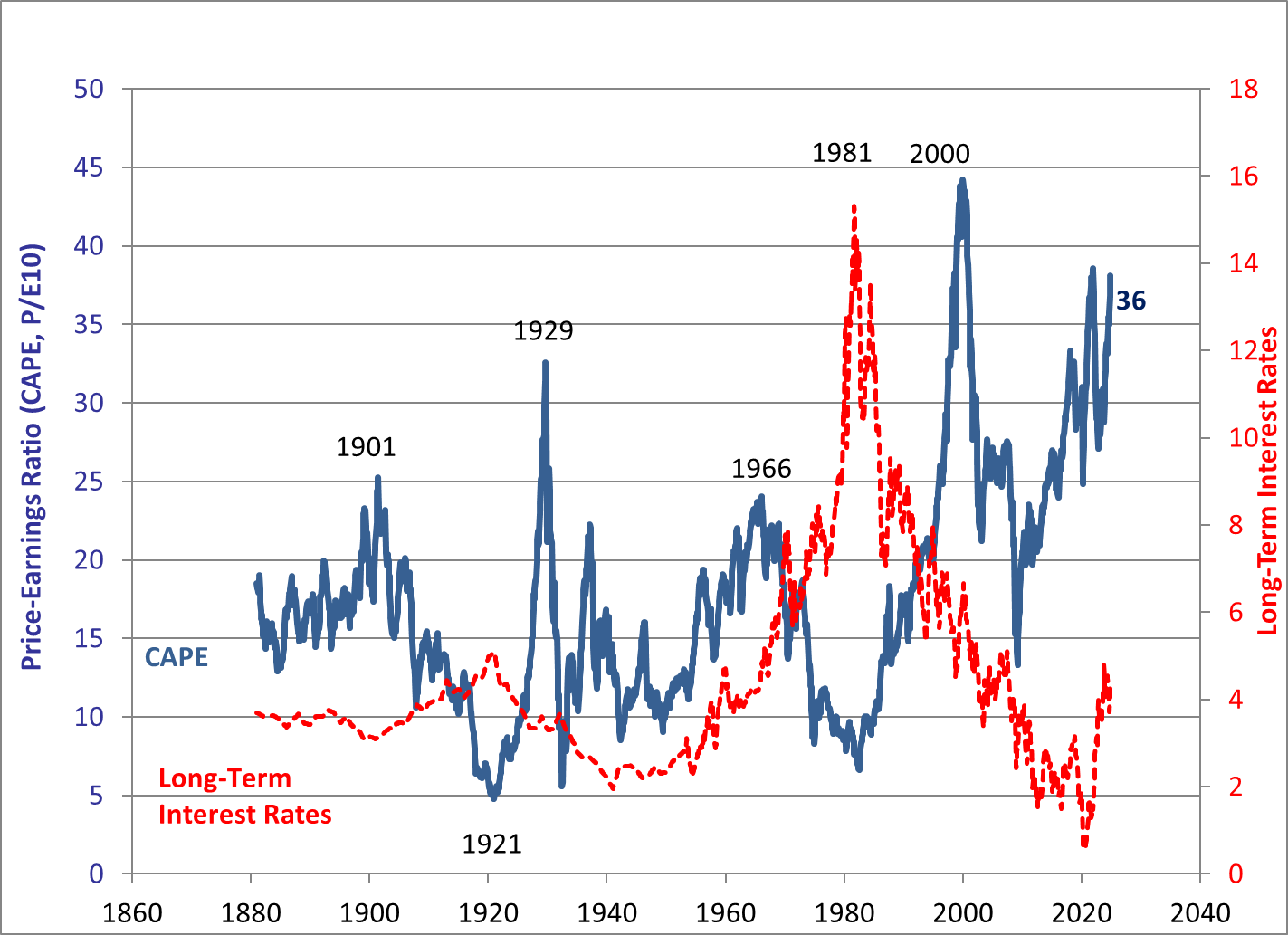 Europe, on the other hand, has a debt to GDP ratio of about 80%, which isn’t great but still a lot better than the US. With the current US administration seemingly less interested in defending Europe, the EU and their largest economy (Germany) are going to spend roughly 2 trillion Euros, mostly over the next 5 years, on defense and infrastructure. If US fiscal policy is consolidating over the next few years while EU fiscal policy is very expansive, the relative change in economic growth rate will favor Europe. The capital to fund that fiscal expansion has to come from somewhere and we know where it is now – in US stocks and bonds mostly. Foreigners have put $3.25 trillion into US assets in the last three years and at the end of last year foreigners owned 18% of the US stock market. Non-US investors do not have a good track record; they were big buyers in ’87 before the crash and in the late 90s before the dot com bust and again right before the 2008 crisis. Those dots almost connect themselves.