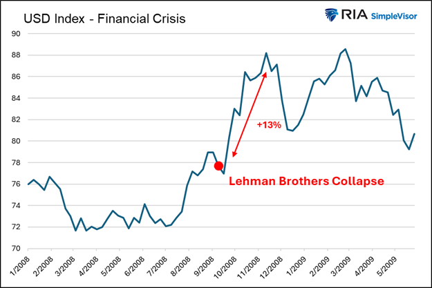 Most crises have been accompanied by a stronger dollar, proving that the dollar is the port in the storm foreign investors seek when economic confidence is lacking, and liquidity is paramount.