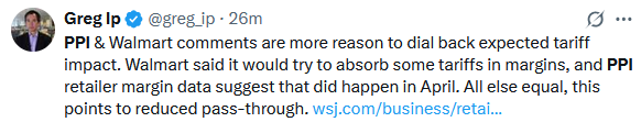 Normally on PPI release we just focus on the categories that's important for calculating core PCE deflator. But April's release is interesting in its own right, as it broadly reinforce the story we saw in the CPI release earlier today: