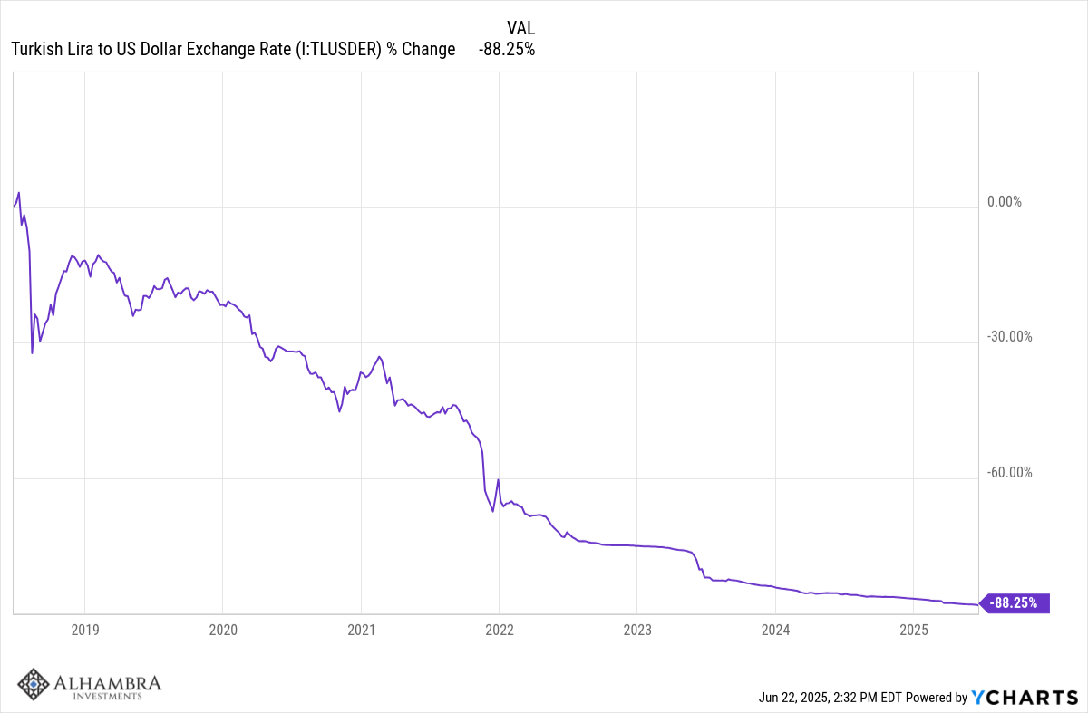 A currency down nearly 90s% is inflation in its purist form. Inflation was over 15% when he was elected in June of 2018 but it rose a bit as the Lira fell, peaking in October of 2022 at a mere 85.5%. Today, two years after starting a rate hiking campaign, inflation is down to just 39%. So much for the Erdogan theory of monetary economics.
