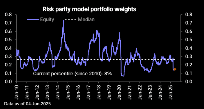 Notably, risk parity models remain grossly underweight equities. Risk parity portfolio models are an investment strategy that allocates risk equally across different asset classes, rather than allocating capital based on traditional metrics like market value or equal dollar amounts. The goal is to create a balanced portfolio where each asset contributes roughly the same amount of risk to the overall portfolio, regardless of its expected return or market size. While risk/parity models seek to avoid unbalanced risk exposure, they are currently on the "wrong side" of the equation, leading to underperformance risk. If this market continues to rally, we should expect to see these allocations rise, providing further support to the rally.