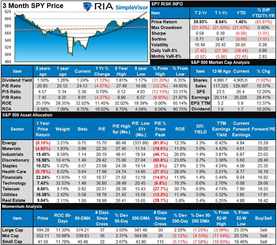 The bullish case remains intact, suggesting that investor portfolios should be weighted toward equity exposure. However, that does not mean there will not be short-term pullbacks or consolidations in the market. Those pullbacks or consolidated positions should be used to increase exposure in portfolios. As we concluded last week: