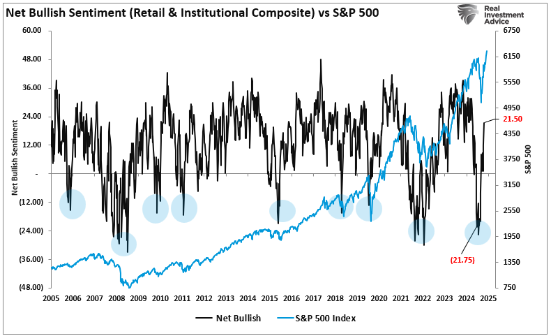 These actions should be done in "small" steps. Minor adjustments today can have a significant impact over time. However, the hard part is that amid a "bullish" market, the "fear of missing out" often overrides a more logical approach to risk management.