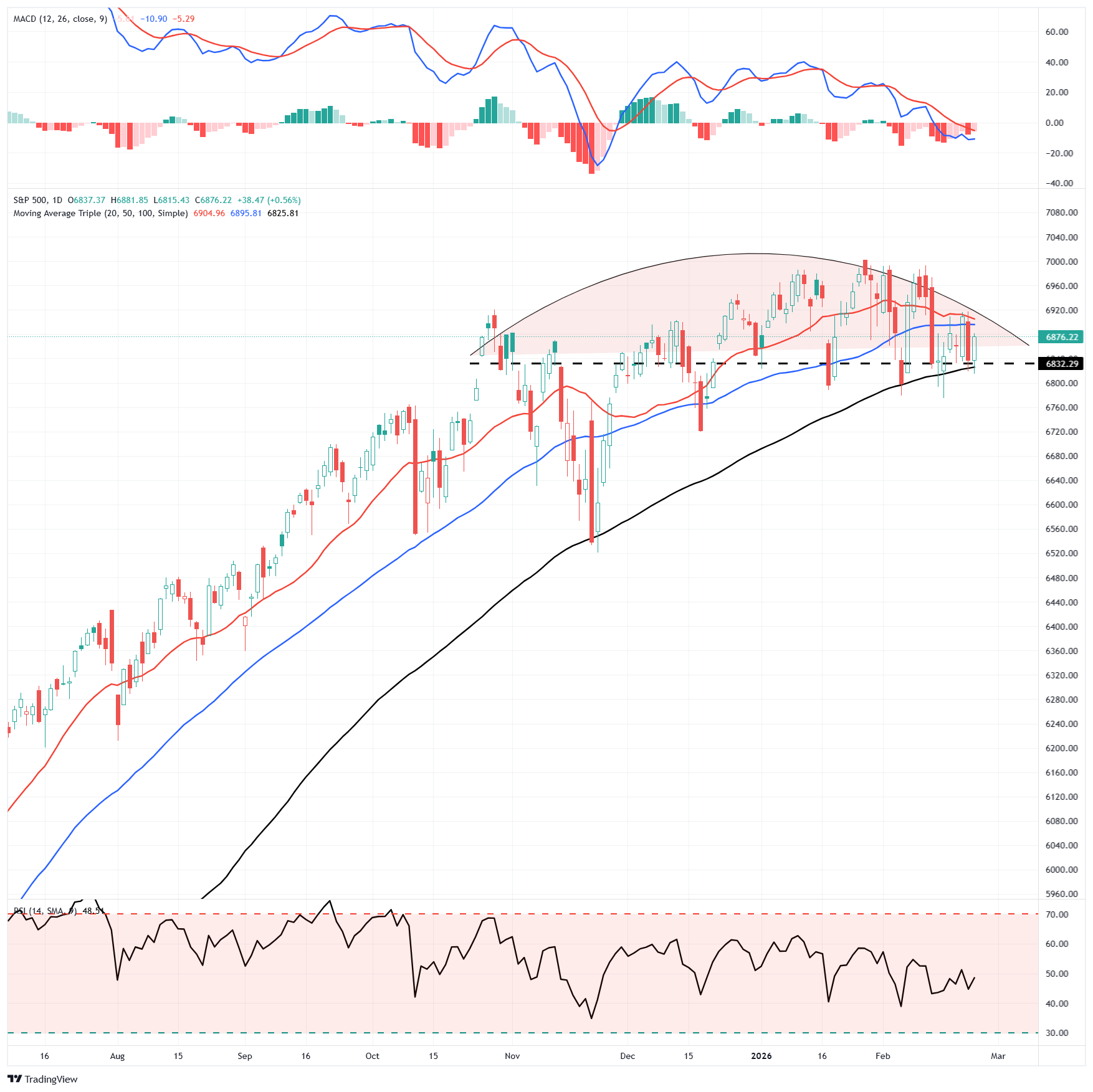 Yesterday, we discussed the substantial short interest in the S&P 500 index. Those shorts are fuel for a rally when one occurs. However, technically, the market looks weak, as shown in the chart below. Momentum continues to fade along with Relative Strength. Furthermore, the market has been making lower highs as of late and is threatening to break important support at the 100-day moving average.