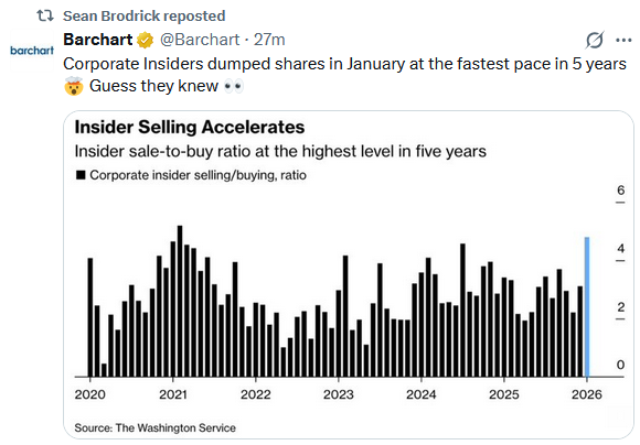 As noted, the markets started February on a sloppy note. Leverage unwound fast once volatility spiked, and selling pressure hit crypto first, then metals, then equities. The sequence mattered as gold and silver broke sharply after repeated CME margin hikes tied to extreme price swings. Higher margin requirements forced traders to raise cash as margin calls mounted, and the fastest way to do so was to sell liquid positions. That selling spread into bitcoin, where leveraged longs liquidated aggressively as prices sliced through technical support near 65,000. Equities followed as cross-asset risk reduction took hold. This looked mechanical, not emotional.