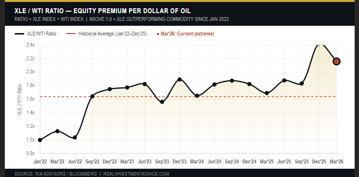Currently, investors are paying a significant premium for energy stocks versus the revenue generated by the underlying commodity.