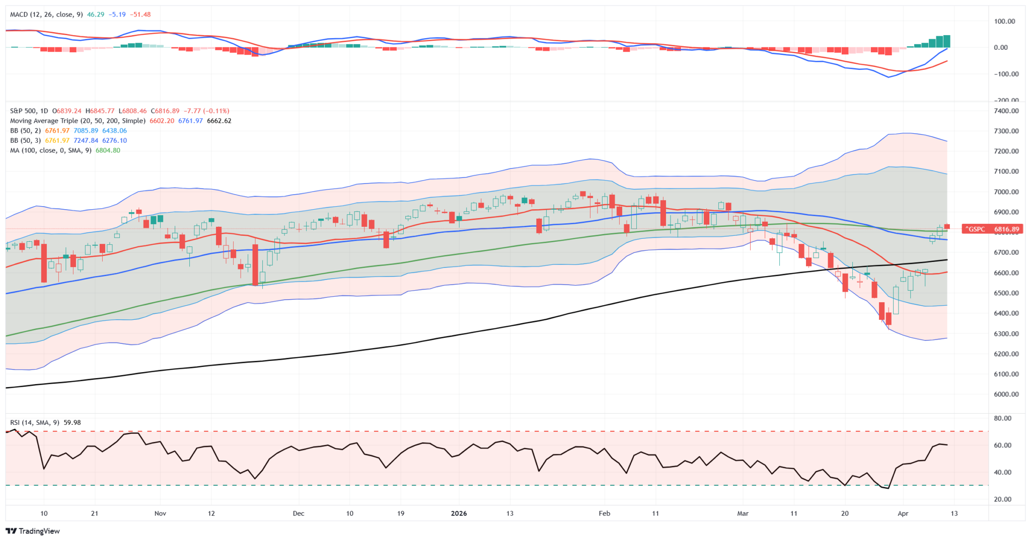 In fact, that rally was one of the strongest in nearly a year, despite the constant stream of negative headlines. The S&P 500 surged on relief that U.S.-Iran tensions had temporarily de-escalated, gaining ground and recapturing the 200-day moving average on a closing basis for the first time since the initial shock of the conflict sent it plunging through that critical floor in mid-March. That single technical event, a clean close back above the 200-DMA, changes the conversation about what comes next, especially with the Q1 earnings season now underway.