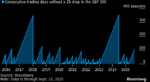 “While there have certainly been more extended periods in the market without a 2% decline, it is essential to remember that low volatility represents a high “complacency” with investors. In other words, the longer the market moves higher without a significant correction, the more confident investors become. They respond by raising their allocations to equities (risk) and reducing their allocations to cash (safety).”