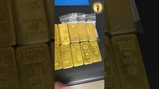 In this video, we see ten kilo gold bars. Ten kilos is around 321.507 troy ounces, or 10,000 grams.