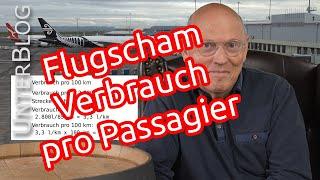 Flugscham … Verbrauch pro Passagier im Flugzeug | PKW | Eisenbahn | Vorschlag für die Zukunft