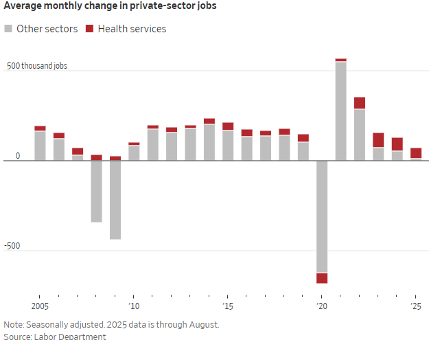 The August jobs report clarified what many investors already suspect: the U.S. labor market is stalling. Outside of healthcare and social assistance, private-sector job creation has nearly flatlined this year. So far in 2025, the economy has added an average of 74,000 private-sector jobs per month. Stripping out the ~64,000 monthly additions from healthcare jobs, …
