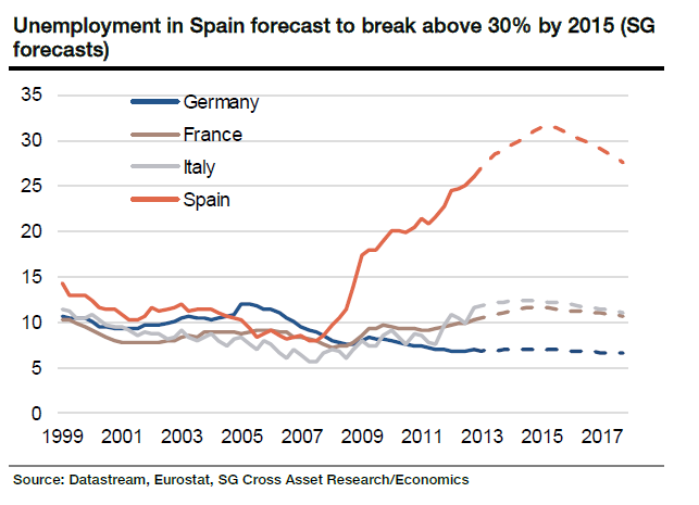 - Excessive optimism and risk appetite in the United States thanks to the Fed’s support of the housing market in QE3 via mortgage-backed securities (MBS).