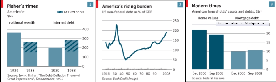 The Fisher Effect also illustrates how the real cost of any and all debts grow as a result of Deflation.
