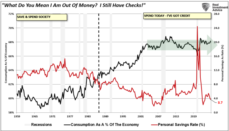 A recent article by Simon White, via Bloomberg, discussed the rising cost of margin debt for investors. While his analysis below compares the cost of debt to GDP, we will also consider a more critical comparison to disposable personal income (DPI). Here is Simon's point. "Yet, where history does raise a red flag is if … Continue reading...